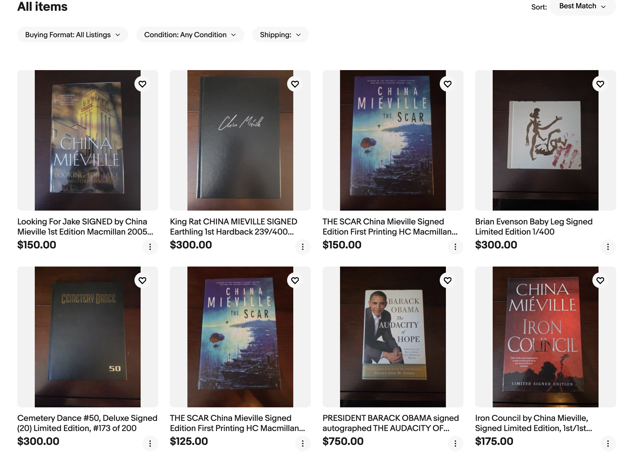 I’m selling a bunch of my signed, limited, and otherwise collectible books on Ebay. I’m also liquidating a lot of my other books (paperbacks and hardcovers) so if you’re looking for something in particular, email me or DM me. Happy New Year! https://www.ebay.com/str/vintagevaluesmodernmemorabilia