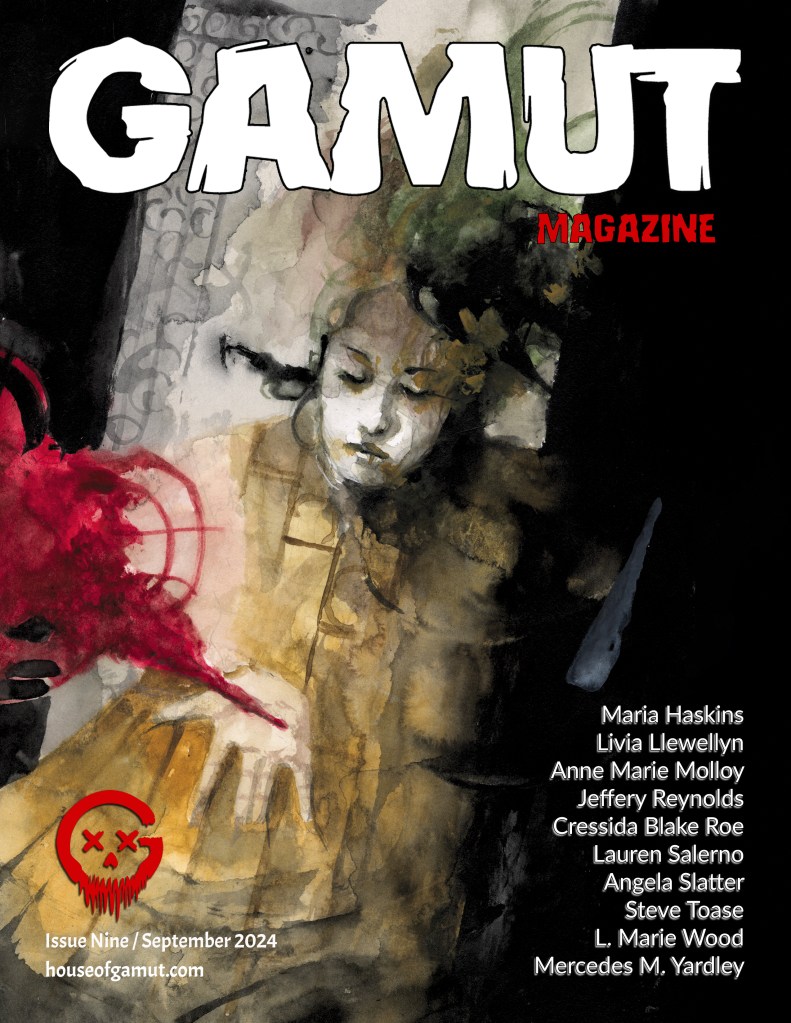 As we start to head into warmer weather with summer right around the corner, there is plenty of exciting new writing to read here at Gamut. We have three new stories in this issue: “The Lack” by C. J. Goldberg is a looping, surreal story filled with tension and the uncanny, but also a dash of hope; “Bone Deep” by Wailana Kalama shows how far two people will go in order to express their love to each other; and “Otherwise Aliyahs” is a bit of science fiction flash that will leave you unsettled, and moved. And for reprints, we three more stories: “Dancing Sober in the Dust” by Steve Toase, a favorite of mine, that disturbs as it educates, the cutting edge theater and costumes of this tale taking us down a path of suffering and expression; “Coral, Again” by E. M. Linden is a haunting story that turns a restless spirit into something else entirely; and “The Things We Burned” by Jennifer Lesh Fleck, is a spirited story of youth and friendship, and what emerges when families are broken apart, fire and destruction always a great release. Our original non-fiction essay this month is “The Marginlisation of Shirley Jackson” by Harley Carnell, which pays respects to one of the first female authors of horror, an amazing writer we still read and talk about today. And our reprint non-fiction is a powerful essay by L. Marie Woods entitled, “African American Horror Authors and Their Craft: The Evolution of Horror Fiction from African Folklore.” Our stunning artwork this month is once again by Orion Zangara. Dig in and enjoy!